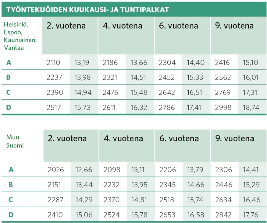 Tarkastusalan työehtosopimus – Palkat, työajat, lomat, työehdot